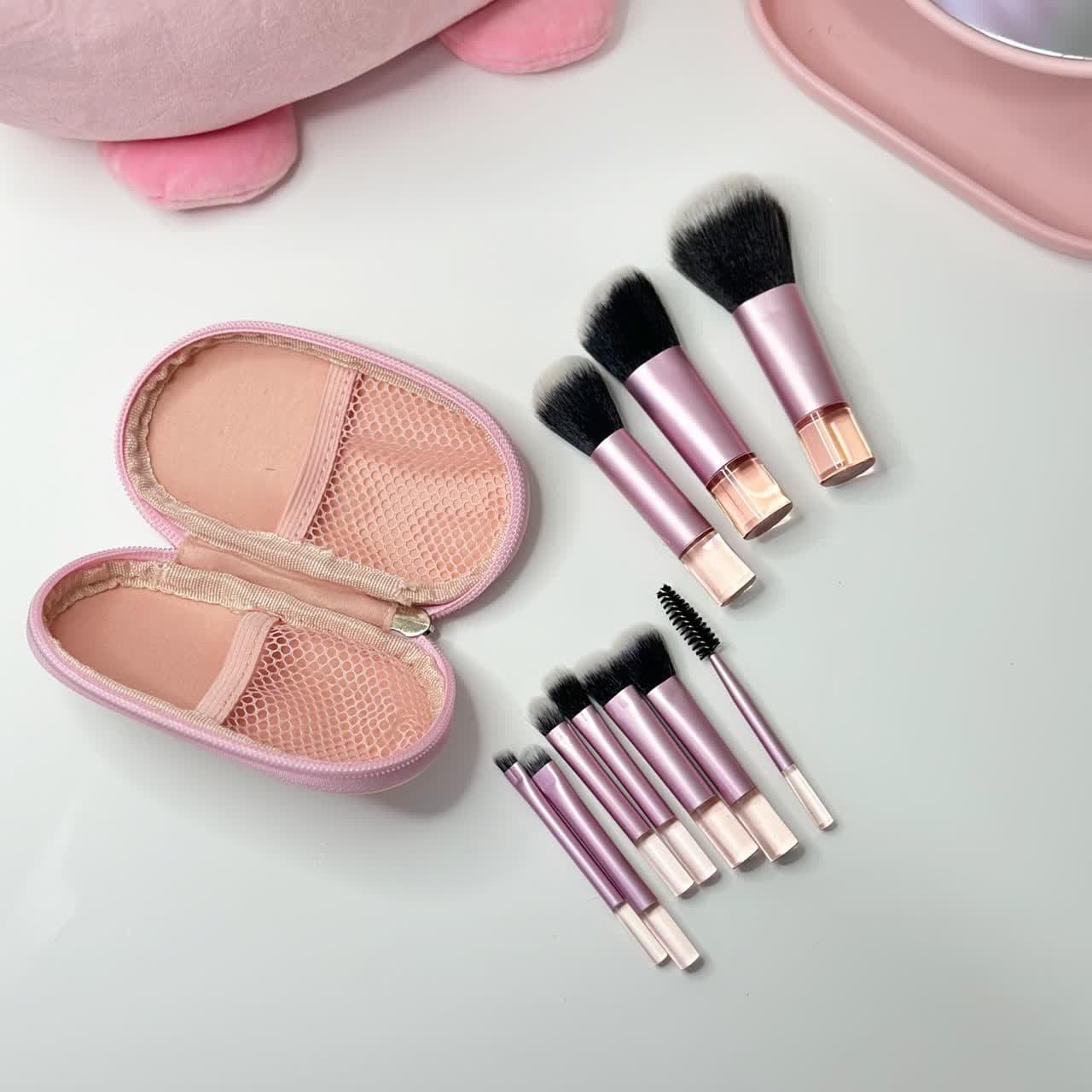 این ست براش مینی شامل 10 عدد براش کاربردی است. این براش‌ها سایز کوچکی دارند و شما می‌توانید برای استفاده روزانه و مهمانی از آن‌ها استفاده کنید. اما نکته قابل اهمیت این است که این براش صورتی به اندازه کف دست و قابل حمل است. شما می‌توانید این براش‌ها را در کیف قرار دهید و به مهمانی بروید؛ همچنین می‌توانید بار چمدانتان را سبک‌تر کنید و سفری لذت‌بخش را تجربه کنید.